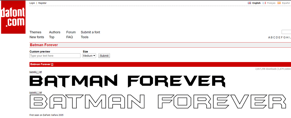 این فونت تا کنون بیش از 3 میلیون بار دانلود شده و تقریبا تمامی تولید کنندگان قطعات سخت افزاری مخصوص بازی، از این فونت استفاده می کنند! فونت بتمن با ویژگی هجومی خود، ظاهر و القاء یک محصول Gaming را شدت بخشیده و از سالهای دور تا کنون توسط تولید کنندگان سخت افزار مورد استفاده قرار می گیرد. این فونت امروزه به عنوان یک موضوع واحد در بین آنها رواج پیدا کرده است.