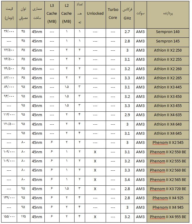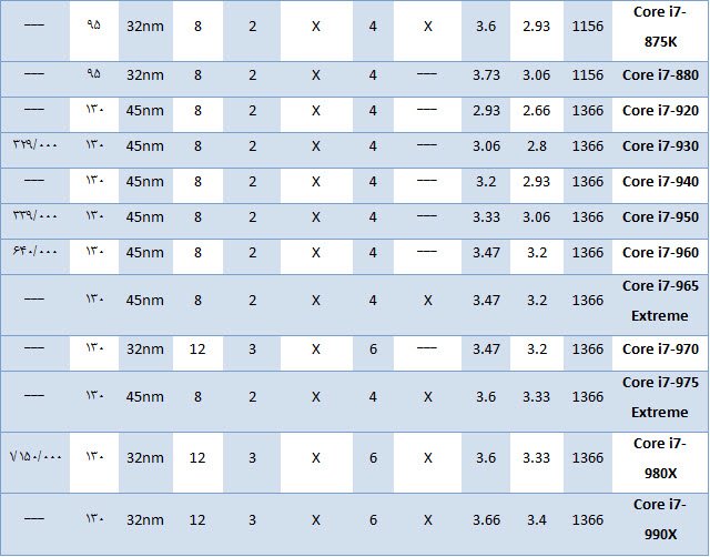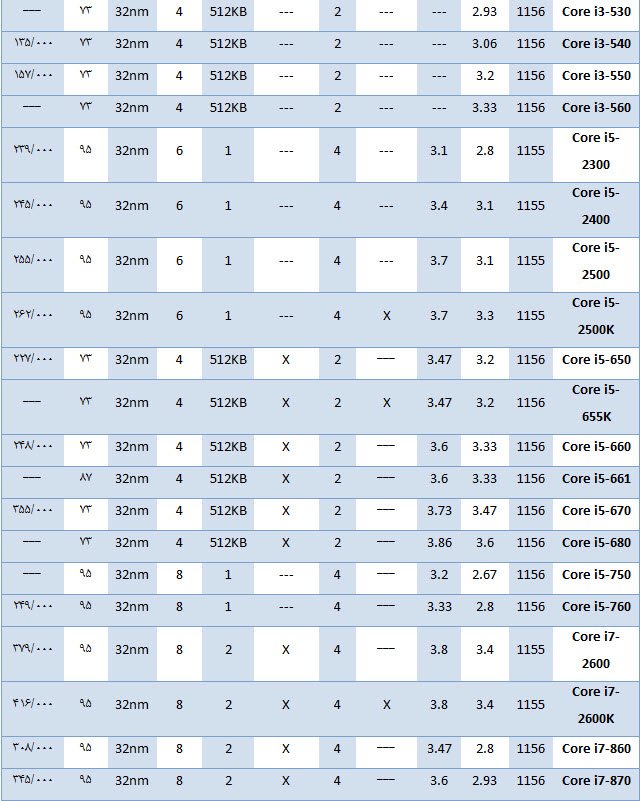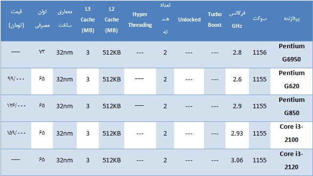 اشاره: قیمت پردازنده ها مربوط به قبل از تغییرات ناگهانی قیمت دلار بود به همین علت ما قیمت قدیم را ارائه کردیم تا قیمت حدودی در اختیار داشته باشید چون در شرایط کنونی قیمت درستی توسط شرکت ها ارائه نمی شود.