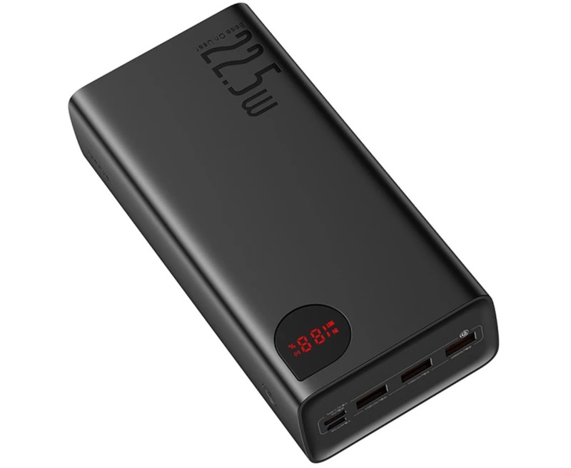 پاوربانک Baseus Adaman 22.5W با ظرفیت فوقالعادهی 40000 میلیآمپر ساعت، یکی از قدرتمندترین محصولات موجود در بازار است. این مدل با وزنی در حدود 925 گرم و بدنهای مقاوم، انتخابی مطمئن برای سفرهای طولانی یا موقعیتهایی است که دسترسی به برق محدود است. این پاوربانک به 4 درگاه خروجی مجهز شده و امکان شارژ همزمان چند دستگاه را فراهم میکند. نوع باتری آن لیتیوم پلیمری است که علاوه بر ایمنی بالا، طول عمر بیشتری نسبت به باتریهای معمولی دارد. نمایشگر دیجیتال دستگاه نیز میزان شارژ باقیمانده را بهصورت درصدی نمایش میدهد تا مدیریت شارژ برای کاربر سادهتر شود.