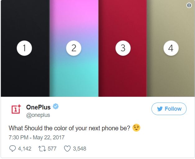 اولین خبر در مورد تبلیغات جدید وان پلاس از جدیدترین پرچمدار خود است. روز گذشته وان پلاس در صفحه ی رسمی فیسبوک خود با انتشار یک آگهی خبر از ” چیزی جدید ” در آینده ی نزدیک به کاربران داده است. شاید شما هم مانند بسیاری از کاربرانی که در زیر پست وان پلاس کامنت گذاشته اند تصور کنید وان پلاس قرار است پرچمدار جدیدی را با نام OnePlus 5T معرفی کند اما احتمال رخ دادن چنین اتفاقی بسیار کم است. وان پلاس 5 اکنون به جدیدترین چیپست پرچمدار کوالکام مجهز است و دارای مقدار کافی حافظه ی رم است و دوربین دوگانه ی این دستگاه نیز در حال حاضر نیاز به پیشرفت ندارد. به همین دلیل انتظار میرود وان پلاس به زودی رنگ جدیدی از وان پلاس 5 را معرفی کند. در حال حاضر وان پلاس فقط در دو رنگ مشکی و خاکستری عرضه میشود که نشان از گزینه های محدود انتخاب رنگ برای کاربران است و اضافه شدن یک گزینه ی دیگر میتواند اتفاق خوبی باشد.