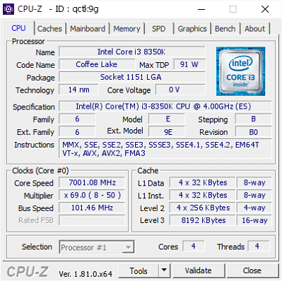 مادربرد MSI Z370 GAMING PLUS میزبان پردازنده ی Intel Core i3-8350K بود. این پردازنده دارای فرکانس 4 گیگاهرتز، توان حرارتی حداکثر 91 وات (بدون در نظر گرفتن اورکلاک سنگین)، 4 هسته و 4 رشته پردازشی است. رکورد جدید این پردازنده اینک به رقم 7001.08 مگاهرتز رسیده است.