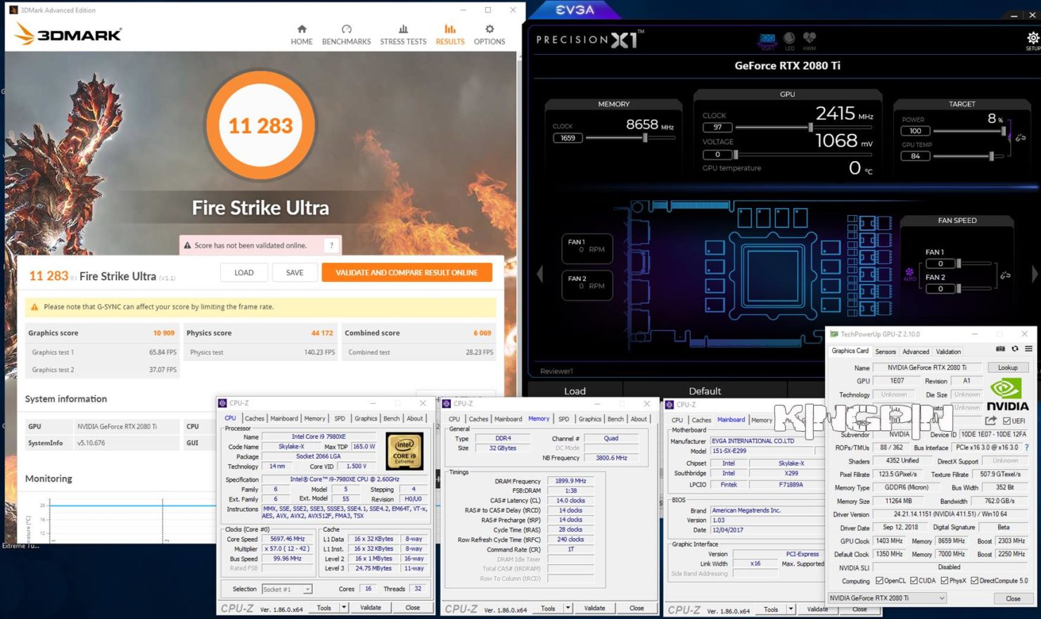 این کارت گرافیک با وجود اورکلاک LN2، موفق به امتیاز 9275 در آزمون Spy Extreme و 11283 در آزمون Fire Strike Ultra شده است. همچنین می دانیم که انویدیا با کمک شرکای تجاری خود، یک برنامه اورکلاک موسوم به Scanner را برای کارت گرافیک های سری NVIDIA RTX 20 راه اندازی کرده است که در ظواهر گوناگون، توسط سازندگان کارت گرافیک ارائه می گردد.
