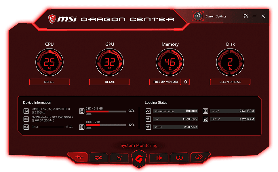 لپ تاپ MSI GS65 Stealth Thin 8RF دارای نرم افزار اختصاصی DRAGON CENTER 2.0 است که مدیریت کامل سخت افزارها به همراه مانیتورینگ آنها را ممکن می سازد. MSI GS65 Stealth Thin 8RF را می توان با پرستیژ ترین لپ تاپ گیمینگ MSI دانست.