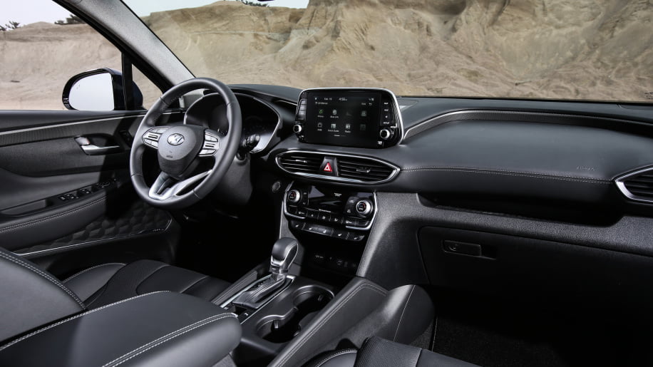 طراحی داخلی کاملا مدرن و با جزئیاتی از چرم ساخته شده. پنل 7 اینچی مرکزی برای کنترل فعالیت های سرگرمی درون خودرو و یک پنل الکترونیکی روبروی راننده برای نمایش اطلاعات کلیدی مانند سرعت، دور موتور و موارد مشابه از جمله نکات کلیدی طراحی داخلی سانتافه جدید هستند. همچنین فضای کافی برای 7 سرنشین در نظر گرفته شده که می تواند پارامتر بسیار مهمی برای افزایش محبوبیت این خودرو در بازارهایی مانند آمریکا باشد.