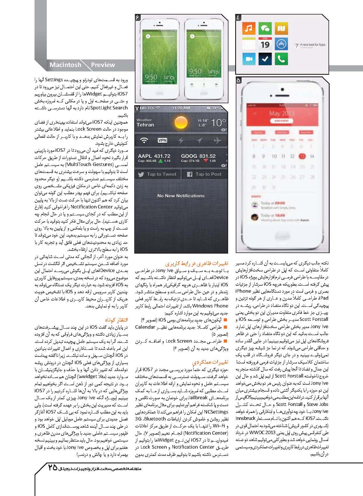 در ستایش سادگی!: حدس و گمان‌هایی در مورد سیستم ios 7 (صفحه 24-25)