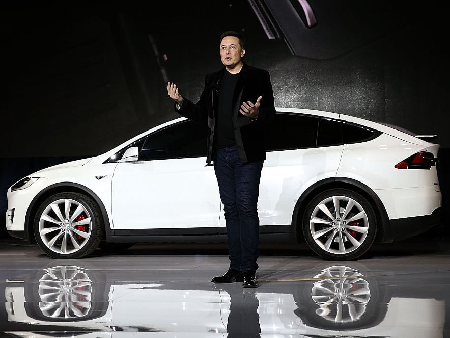 ایلان ماسک، بنیانگدار تسلا و اسپیس اکس در مراسم راه اندازهی مدل جدید تسلا X Crossover SUV.