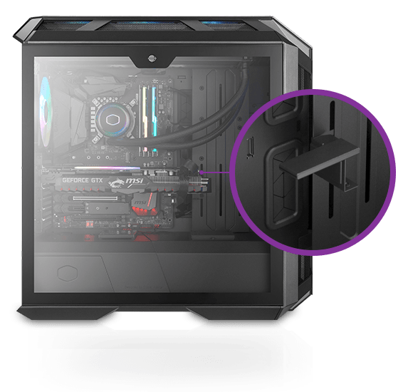 در بخش بالا و جلوی کیس می توانید از تمامی رادیاتورهای مایع با ابعاد 120 الی 360 میلی متر استفاده نمائید. منابع تغذیه به طول 200 میلی متر، کارت گرافیک هایی به طول 412 میلی متر، خنک کننده های بادی با ارتفاع 190 میلی متر و با نگاهی دقیق تر به پشتیبانی از خنک کننده مایع، متوجه خواهید شد که MasterCase H500M برای پشتیبانی از سخت افزارهای داخلی بسیار خوب مهندسی شده است.