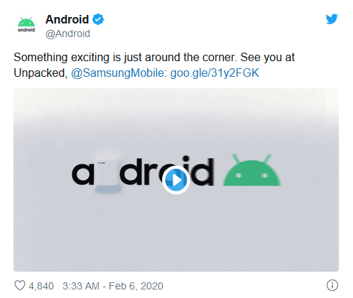 طی توییت منتشر شده توسط اکانت رسمی Android، گوگل سورپرایز ویژه‌ای برای کاربران خود در مراسم Unpacked سال 2020 سامسونگ دارد و احتمالات زیادی در این خصوص درحال انتشار در سطح اینترنت می‌باشد.