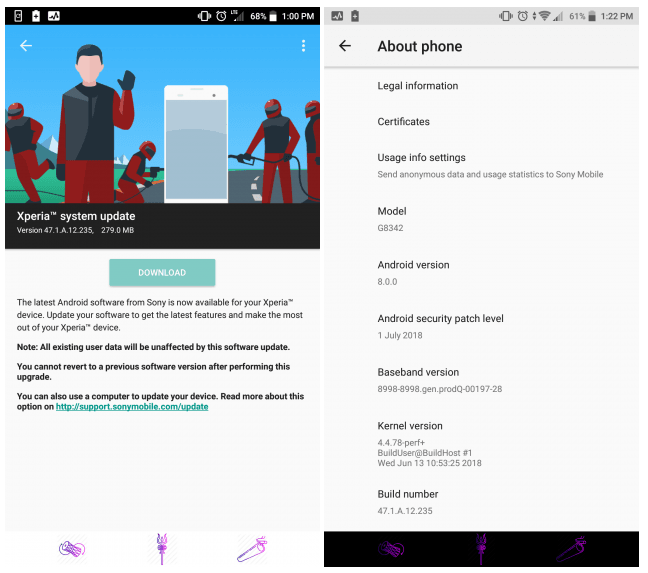 شرکت سونی اگرچه در زمینه تلفن هوشمند با ضررهای متعددی رو به رو شد اما با استراتژی جدید خود می خواهد به فعالیت چندین ساله خود در این صنعت همچنان ادامه دهد تا از ضررهای گذشته جلوگیری کند. به هر حال این شرکت هر سال نسل جدیدی از تلفن های هوشمند سری Xperia XZ را با طراحی و مشخصات جدید معرفی می کند. به تازگی ژاپنی ها بروزرسان جدیدی را برای سه مدل پرچمدار Xperia XZ1/XZ1 Compact و پریمیوم منتشر کردند تا تجربه کاربری بهتری را به صاحبان سه مدل گوشی هوشمند ارائه دهند. شماره بروزرسان 47.1.A.12.235 بوده و به گفته سونی بروزرسان امنیتی ماه جولای در کنار رفع مشکلات اندروید است. متاسفانه سونی جزئیات کاملی در اختیار نگذاشته و باید آن را محصولی کامل دانست.