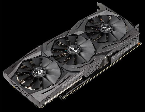 در راس هرم کارت گرافیک پرچمدار ASUS ROG Strix RTX 2070 قرار دارد. این کارت گرافیک دارای Aura RGB، خنک کننده DirectCU III با 3 عدد فن، درگاه های پیشرفته HDMI 2.0b، DisplayPort 1.4 و USB-C است.