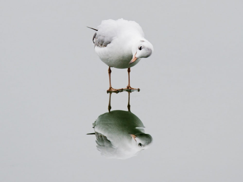 پرنده کوچکی که بر روی یخ دریاچه Maschsee در هانوفر آلمان ایستاده است