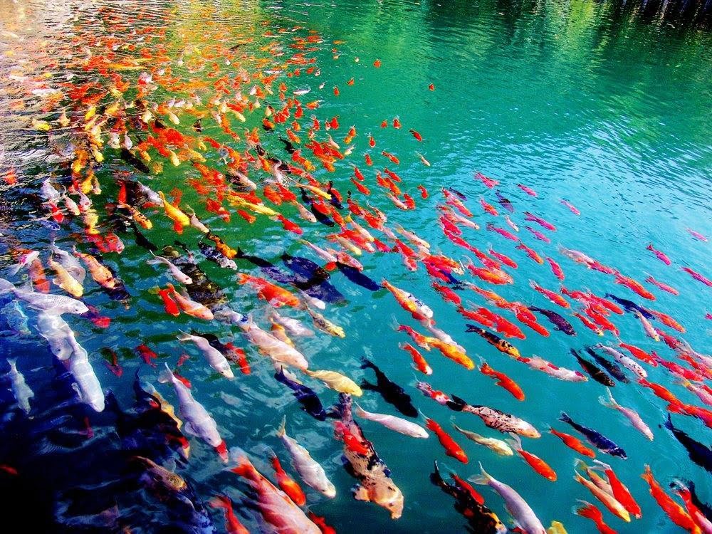 برکه ای از ماهی های رنگارنگ، یوننان، چین
