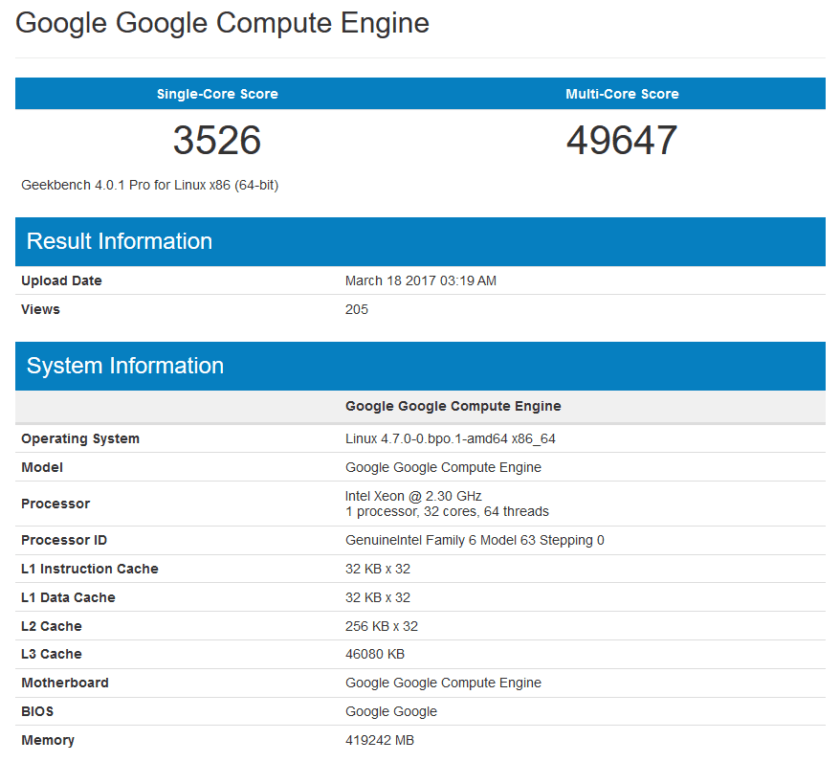 هنوز جوهر شایعه و اطلاعات مرتبط با پردازنده ی 16 هسته/32 رشته ای AMD مبتنی بر هسته های ZEN در کلاس دسکتاپ خشک نشده بود که که یکی از مجموعه های نزدیک به Intel به نام  Shaun Fosmark اطلاعاتی را از یک غول پردازشی این شرکت منتشر کرده است؛ پردازنده ای به نام Skylake-EP Xeon E5 2699 v5 که در دسته بندی مدل های تخصصی و با عملکرد بالای Xeon قرار می گیرد. در ماه های اخیر اطلاعاتی در زمینه پردازنده های Skylake-E و Skylake-EP منتشر شده بود و می دانستیم که اینتل بر اساس معماری 14 نانومتری اسکای لیک به زودی پردازنده های جدیدی را ارائه خواهد کرد. در همین راستا نتایج Geekbench این پردازنده بسیار قدرتمند منتشر شده است. Skylake-EP Xeon E5 2699 v5 به تازگی در اختیار تیم موتور محاسبه Google (Google Compute Engine) قرار گرفته است تا آزمون های نهایی را پشت سر بگذارد. این CPU دارای 32 هسته و 64 رشته پردازشی است و ظاهرا با پردازنده های AMD Naples وارد رقابت می گردد. این پردازنده ها در کلاس سرور و پایگاه داده مورد بهره برداری قرار خواهند گرفت. در ادامه سری به نتایج Google Compute Engine خواهیم زد؛ در جریان این آزمون و حالت Multi Core که تمامی هسته ها فعال هستند، امتیاز بسیار بالای 49647 بدست آمده است. همچنین در تک هسته یا Single Core نیز امتیاز 3526 برای این محصول به ثبت رسیده است.