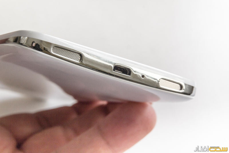 محل قرارگیری دکمههای فیزیکی مشابه با G Pro بوده و دکمه quick Button نیز همچنان وجود دارد و شما میتوانید این دکمه را برای اجرای یک نرمافزار خاص برنامهریزی نمایید. در بالای گوشی نیز اتصال 3.5 میلیمتری هدفون، میکروفن دوم (برای حذف نویز محیط در زمان مکالمه) و پورت IR برای کنترل دستگاههای مختلف در نظر گرفته شدهاند. نکته مثبت دیگر درباره این گوشی، تعویض بلندگوی تک کاناله G Pro و استفاده از بلندگو های استریو است. همچنین این بلندگوها به پایین گوشی و اطراف پورت microUSB منتقل شدهاند که امکان پوشانده شدن آنها زمانی که گوشی روی میز قرار دارد را منتفی میکند.