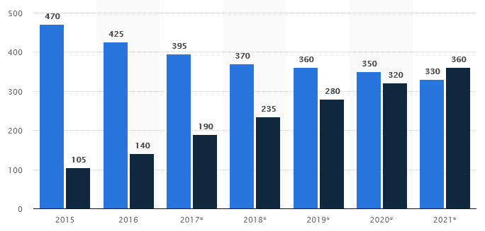 رقابت در بین درایو های سالید (SSD) و هارد دیسک ها (HDD) تنها در دو مسئله گره خورده است؛ سرعت و قیمت بالاتر درایو های سالید در مقابل قیمت کمتر درایو های HDD. حال آمار فروش هر دو ذخیره ساز از سال 2015 منتشر شده و در آن پیشبینی سالهای آتی نیز درج شده است. این آمار تا سال 2021 به بررسی روند فروش، رشد و کاهش تعداد در سطح جهانی پرداخته است که بسیار جالب توجه است.