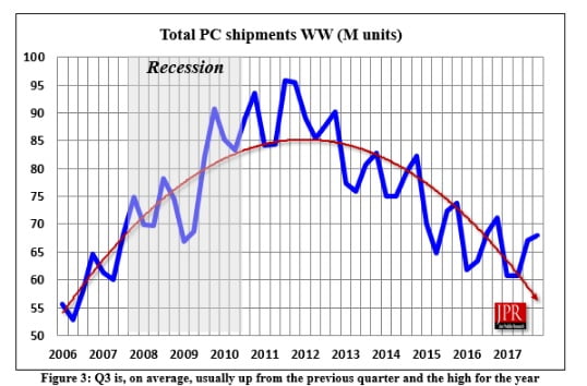 کمپانی اینتل با رشد 5.01%، ای ام دی با رشد 7.63% و در نهایت انویدیا نیز با رشد 29.53% این فصل مالی-کاری را به پایان رسانده اند. در طول این مدت، 39.55% از تمامی کامپیوترهای شخصی در سراسر جهان از کارت گرافیک های مجزا استفاده کرده اند که در این زمینه نیز شاهد رشد 4.18% هستیم. همانطور که می دانید، AMD به تازگی سری جدید APU های خود، با ترکیب هسته های ZEN و Vega را راهی بازار کرده است؛ فروش APU های این شرکت با احتساب مدل های جدید و قدیمی تر نیز تا 7.1% به نسبت فصل پیشین رشد داشته است.