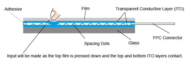 در این فناوری صفحه لمسی از چند لایه تشکیل شده‌است که مهم‌ترین‌شان، دو لایه فلزی‌ست. لایه‌های مقاومتی (حساس به فشار) با فاصله کمی از هم جدا شده‌اند. وقتی این صفحه در نقطه خاصی توسط شیئ، لمس شود، صفحات مقاومتی در آن نقطه به یکدیگر متصل می‌گردند. در این حالت صفحه به صورت مقاومت عمل کرده و جریان الکتریکی صفحه تغییر می‌کند که توسط یک کنترلر، پردازش می‌شود. تغییر جریان به این نحو است که برحسب تعداد سیم‌های استفاده شده و مکان اتصال، مقاومت بین صفحات متفاوت خواهد بود.  خروجی تخته لمسی معمولاً چهار، پنج و هشت‌سیمه‌است و مکان لایه‌های مقاومتی برحسب تعداد خروجی مورد استفاده متفاوت خواهد بود. در حالت چهارسیمه، شیء می‌تواند در چپ، راست، بالا و پایین قرار گیرد. در حالت پنج سیمه، نقطه‌های قابل تشخیص شامل پنج گوشه و نقطه وسط خواهد بود.  صفحات لمسی مقاومتی معمولاً قیمت مناسبی دارند؛ ولی دارای قدرت تفکیک ٪۷۵ هستند (که با اضافه کردن فیلم‌های پلاستیکی و شیشه‌ای تا ٪۸۵ قابل افزایش است) . در مقابل این‌گونه صفحات از عوامل بیرونی مانند، آب و گرد و خاک تأثیر نمی‌پذیرند و امروزه بیشترین استفاده را دارند.برای کیوسکهای اطلاع رسانی یا ماشینهای خودپرداز (بانک، سینما، فروشگاه) بطور گسترده‌ای استفاده می‌شوند.