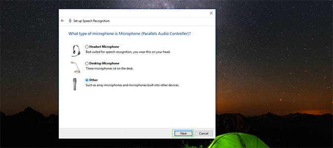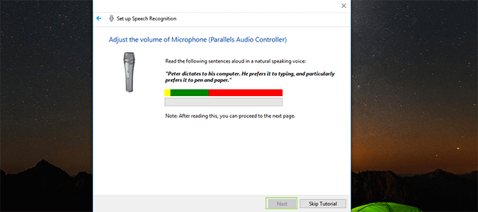 زمانی که میکروفون شما آماده بود بر روی Next کلیک کنید و در مرحله ی بعد باید متن نمایش داده را در میکروفون بخوانید و در نهایت بر روی Next کلیک کنید.
