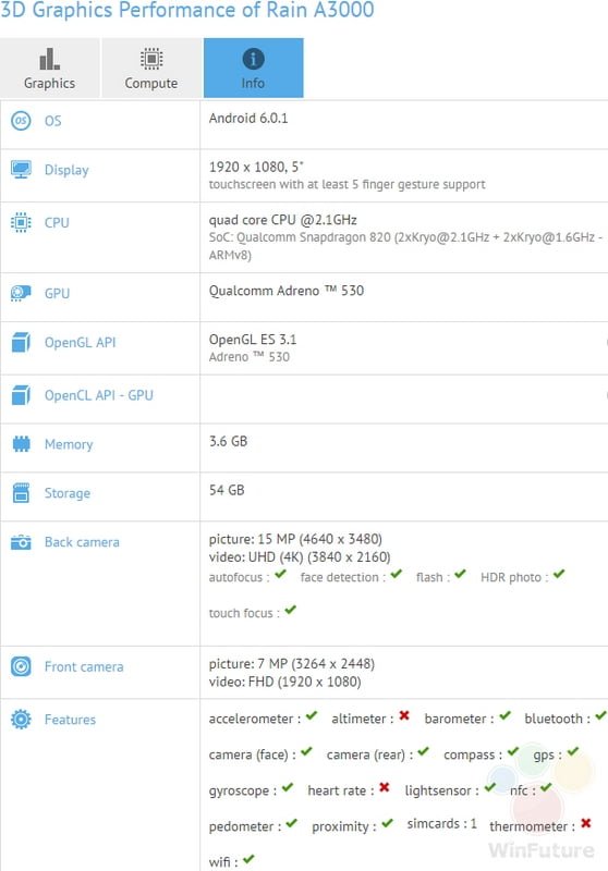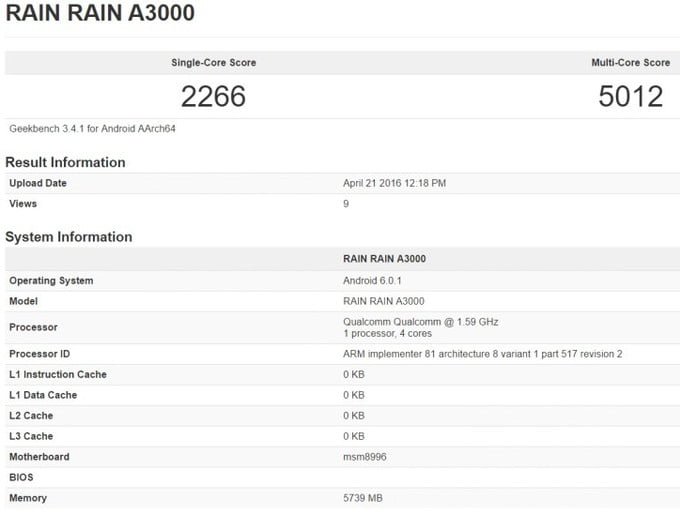 نکته ی قابل توجه این است که اطلاعات فاش شده توسط AnTuTu و GFXBench که مربوط به مدل Rain A3000 بودند نشانگر حافظه ی رم 4 گیگابایتی بودند و این یعنی ممکن است مدل Rain Rain A3000 نسخه ی متفاوت و قوی تری از این پرچمدار باشد و با توجه به اطلاعات پراکنده ای که از این تلفن همراه منتشر شده میتوان انتظار یک پرچمدار قدرتمند را داشت.