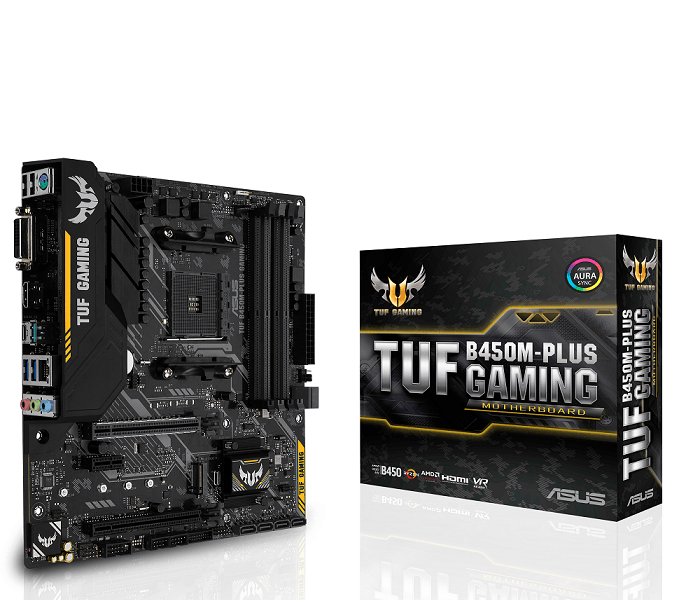 شاهکار سری TUF Gaming با چیپست B450، مادربردهای TUF B450-Plus Gaming و TUF B450M-Plus Gamingهستند که همه اجزای آن از ماسفت ها، چوک ها و خازن ها تا سایر قطعات تشکیل دهنده روی مادربرد با گواهی استاندارد نظامی واقعی و قابل استناد (برخلاف سایر برند های مدعی این استاندارد) عرضه می شوند! دو فرم فاکتور micro-ATX و ATX با همراهی سخت افزار قدرتمند و کارت صدای DTS هشت کاناله از ویژگی این مادربردها است.