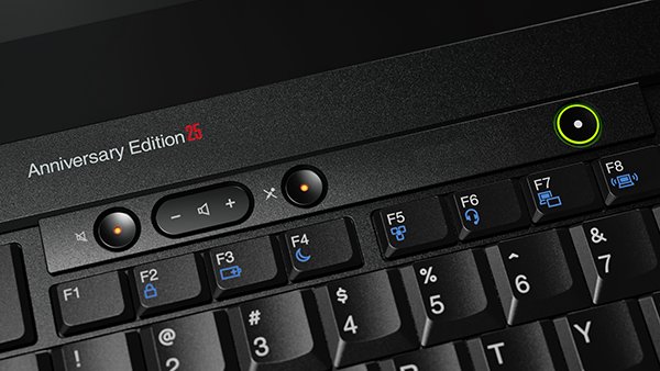 این محصول دارای TrackPoint است که البته در برخی مدل های حال حاضر نیز دیده می شود؛ ThinkPad Anniversary Edition 25 دارای صفحه کلید 7 طبقه است و کلید Enter به رنگ آبی است که نهایت شباهت با مدل های قدیمی حفظ گردد. نشانگرهای LED، کلیدهای فیزیکی کنترل صدا و در نهایت نشان چند رنگ ThinkPad نیز از جمله دیگر موارد قابل اشاره در این مدل خاص است. ThinkPad Anniversary Edition 25 محصولی است که کاملا ظاهر قدیمی ThinkPad ها به همراه میراث آنها حفظ کرده است؛ با این وجود سخت افزار و قطعات آن مدرن و پیشرفته هستند. ThinkPad Anniversary Edition 25 با پردازنده Kaby Lake Core i7-7500U و 16 گیگابایت حافظه رم معرفی شده است.