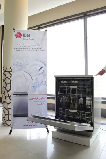 در کنار این ماشین لباسشویی، ماشین ظرفشویی جدید LG قرار داشت که دارای سیستم باکتری زدایی از ظروف با استفاده از بخار است (به گفته LG، این اولین ماشین ظرفشویی مجهز به چنین سیستمی است). در ظروف این ماشین ظرف شویی می توان ظروفی با حداکثر ارتفاع 35 سانتیمتر قرار داد و از سیستم بخار در کاهش آب مصرفی استفاده کرد (برای شستشوی ظروف 9 لیتر آب لازم خواهد بود). وسیله باکتری زدای دیگری که در این دستگاه به کار گرفته شده لامپ UV است که با نور ماورا بنفش میتواند بخش عمده ای از باکتری ها را از بین ببرد.