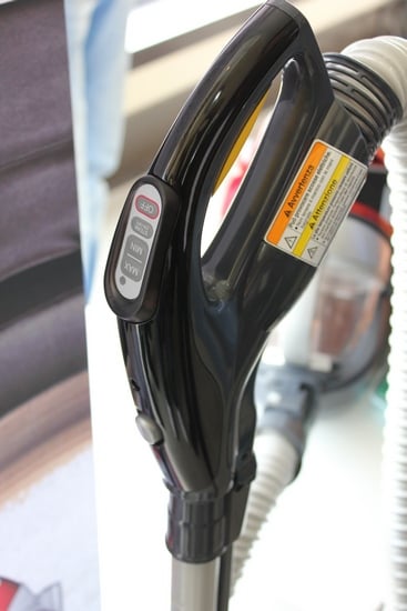 نمایشگر بالای جاروبرقی نیز نشان می دهد تا چه حد از این ظرف پر شده است. همچنین دکمه های کنترلی روی دستگیره جاروبرقی قرار دارند و پیغام های صوتی (که البته فارسی نیستند) کاربر را در استفاده بهتر از این وسیله یاری می کنند.