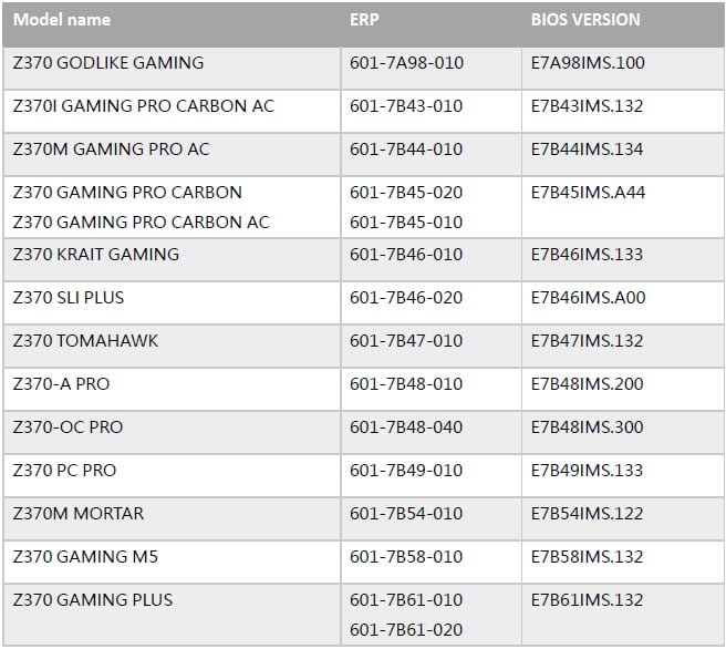 ارائه جریان دقیق و ولتاژ ثابت به همراه امکان بردن هسته ها به بالاترین فرکانس به دلیل استفاده از مدار PWM توانمند و دیجیتالی، در کنار فناوری CORE BOOST از مادربردهای MSI یک محصول حرفه ای برای پذیرایی از Intel Core i7 8086K فراهم ساخته است. این شرکت لیست بلند بالای مادربردهایی که از این پردازنده پشتیبانی می کنند را ارائه کرده است.