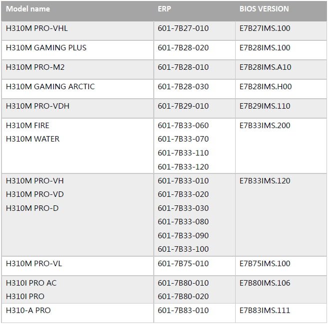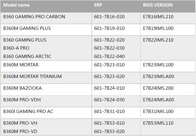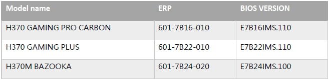 همچنین این شرکت به مشتریان خود توصیه می کند که بایوس مادربردهای خود را نیز آپدیت نمایند.