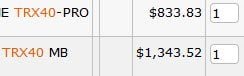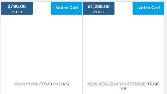 اکنون یک افشا کننده اخبار سخت افزار در توییتر با نام کاربری @Momomo-us دو برچسب قیمتی را افشا کرده و ادعا کرده است که مربوط به مادربردهای TRX40 هستند. قیمت‌های افشا شده بر اساس دلار استرالیا هستند که بعد از تبدیل به دلار آمریکا، حدودا 573 و 923 دلار می‌شوند. همچنین این افشاگر تصویری مبهم با اسامی تار شده مادربردها منتشر کرده که با کمی دقت میتوان متوجه شد اسامی تار شده، Asus Prime TRX40 Pro و Asus ROG Zenith II Extreme هستند.
