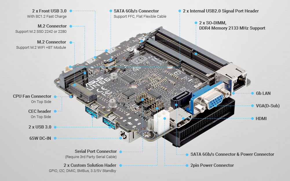 مادربورد VivoMini UN66، علاوه بر دارا بودن پردازنده قدرتمند و پشتیبانی از حافظه DDR4 با سرعت 2133 مگاهرتز، راهکارهای اتصال متنوعی دارد. ماژول Wi-Fi و بلوتوث نسخه چهار، چهار پورت پرسرعت USB 3.0 با پشتیبانی از قابلیت Fast-Charge امکان اتصال بی دردسر هر دستگاهی را به کاربر می دهد. همچنین توسط پورت HDMI،VGA و پورت RJ45 برای LAN و یک جک استاندارد صدا می تواند به هر نمایشگری متصل شود.