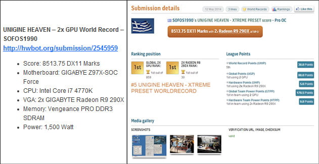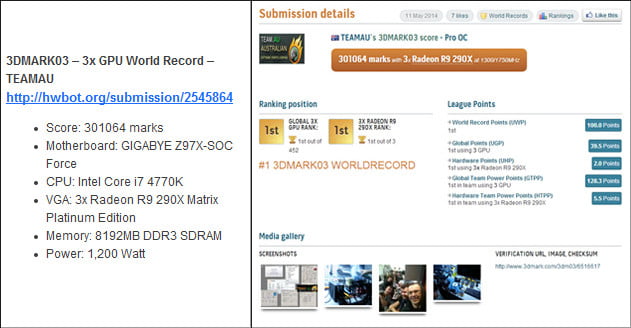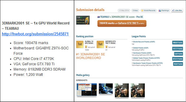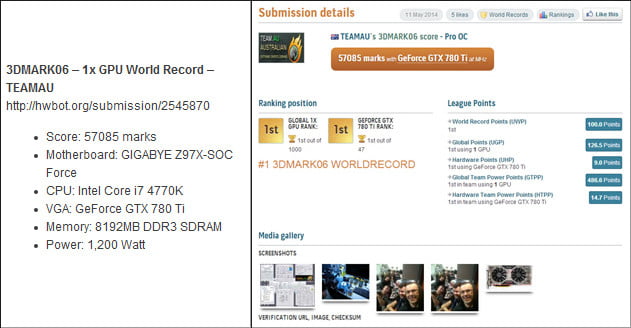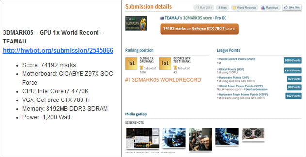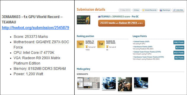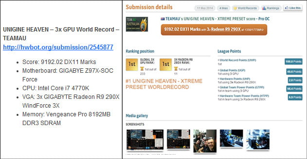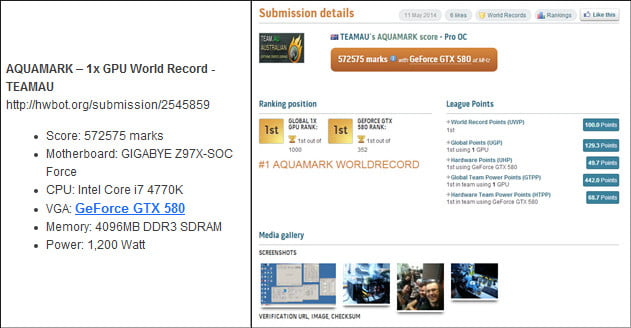 کمپانی گیگابایت طبق روال معمول، پیش از عرضه رسمی محصولات جدید خود، قطعات را برای ثبت رکورد های جهانی اورکلاک در اختیار اورکلاکرهای رسمی خود قرار می دهد. این اتفاق برای مادربرد های جدید Z97 این شرکت رخ داده و تیم اورکلاک گیگابایت به سرپرستی HiCookie موفق به ثبت 9 رکورد جدید در تست های مختلف گردید. این تست ها شامل نسخه های مختلف 3D Mark، Unigine Heaven و Aquamark می شود که در مجموع 9 رکورد اورکلاک جدید به نام دو مادربرد Gigabyte Z97X-SOC و Gigabyte Z97X-SOC Force به ثبت رساندند.