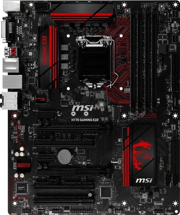 مادربرد MSI H170 GAMING M3 محصولی گیمینگ و مناسب برای اجرای نرم افزارهای گرافیکی و تخصصی است که از سوکت LGA 1151 در کنار چیپست H170 بهره می برد. چیپست H170 به غیر از ویژگی اورکلاک، تقریبا تمامی قابلیت های چیپست Z170 را در خود حمل می کند. 4 اسلات حافظه رم بر روی برد وجود دارد که از حداکثر 64 گیگابایت DDR4 با فرکانس 2133 مگاهرتز پشتیبانی می کند. اگر خواهان استفاده از حافظه های پر سرعت هستید، یک اسلات M.2 با سرعت 32 گیگابیت در ثانیه نیز برای آن فراهم شده است که از اینترفیس SATA III پشتیبانی می کند. یکی از جذابیت های این مادربرد ترکیب رنگ های قرمز و مشکی است که در کنار نشان اژدها، حس یک مادربرد گران قیمت را القا می کند. تراشه KILLER E2400 کنترل شبکه را در این مادربرد بر عهده دارد. مدیریت ترافیک شبکه و الویت دادن به بازی های آنلاین نیز از جمله کاربردهای این تراشه است. پورت RJ45 در این مادربرد به قابلیت LAN Guard و قطعاتی با تحمل 15 KV مجهز شده است تا از مشکلات نوسان جریان در آن جلوگیری نماید.
