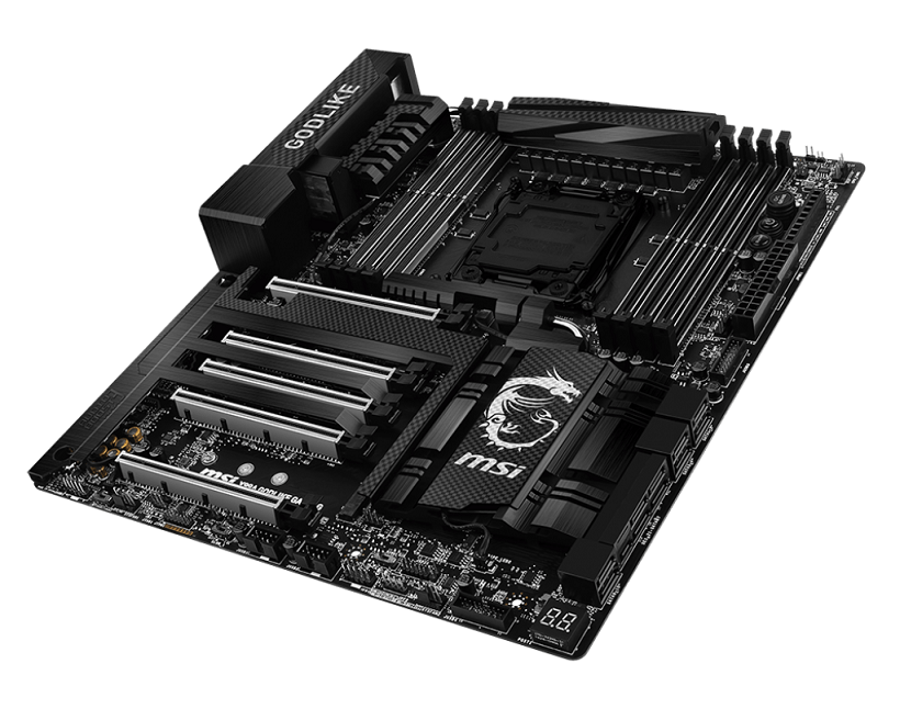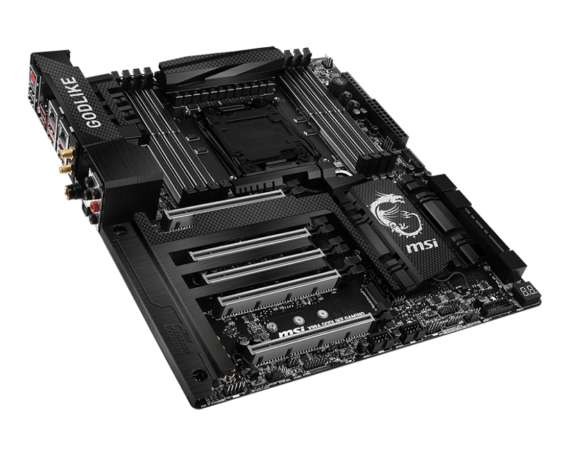 این مادربرد از سری کربن MSI بوده و ضمن داشتن چیپست X99 از سوکت پردازنده 2011-v3 برخوردار است.اما این سوکت از نوع OC بوده و دارای 2036 پین است.اسلات های DDR4 در این مادربرد به فناوری Steel Armo مجهز گشته اند.بدین ترتیب تداخل فرکانس و نویز در بخش حافظه های رم به حداقل می رسد.یک مدار محافظ سیگنال نیز در این قسمت به خدمت گرفته شده است.این مادربرد به دیودهای نوری در قسمت های مخفی مجهز شده است.MSI نام این فناوری را MYSTIC LIGHT نهاده است.چندین حالت تابش و رنگ بندی متفاوت برای آن وجود دارد.مدار فاز PWM و VRM توسط یک هیت سینک مشترک شده با لوله های انتقال حرارت (Heat Pipe) پوشانده شده است. EXTENDED DRAGON ARMOR نیز پوششی است که مدار چاپی بخش صدا را احاطه کرده است.جلوگیری از تداخل و نویز هدف اصلی این پوشش است.