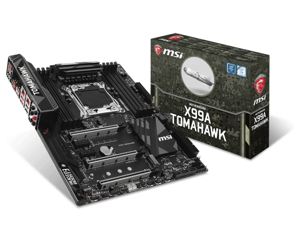 مادربرد MSI X99A Tomahawk جدید ترین مادربرد X99 از MSI است.ظاهر گیمینگ آکنده با حاشیه های نظامی،تداعی قدرت در ذهن کاربران است.8 اسلات حافظه رم به مانند بسیاری از مادربردهای X99 بر روی آن موجود است.3 اسلات توسعه PCI 3.0 X16 با قابلیت Multi GPU نیز برای آن در نظر گرفته شده است.اما یکی از نکات جالب توجه در این مادربرد،استفاده از پوشش ضد نویز در قسمت پورتهای I/O است.این پوشش تا قسمت تراشه صوتی نیز ادامه یافته است.کاربران می توانند با خیال آسوده،به اورکلاک و شیطنت های سخت افزار مشغول شوند.MSI اعلام کرده است که این پوشش قسمت های صوتی و I/O را در زمینه تداخلات الکترومغناطیسی محافظت خواهد کرد.