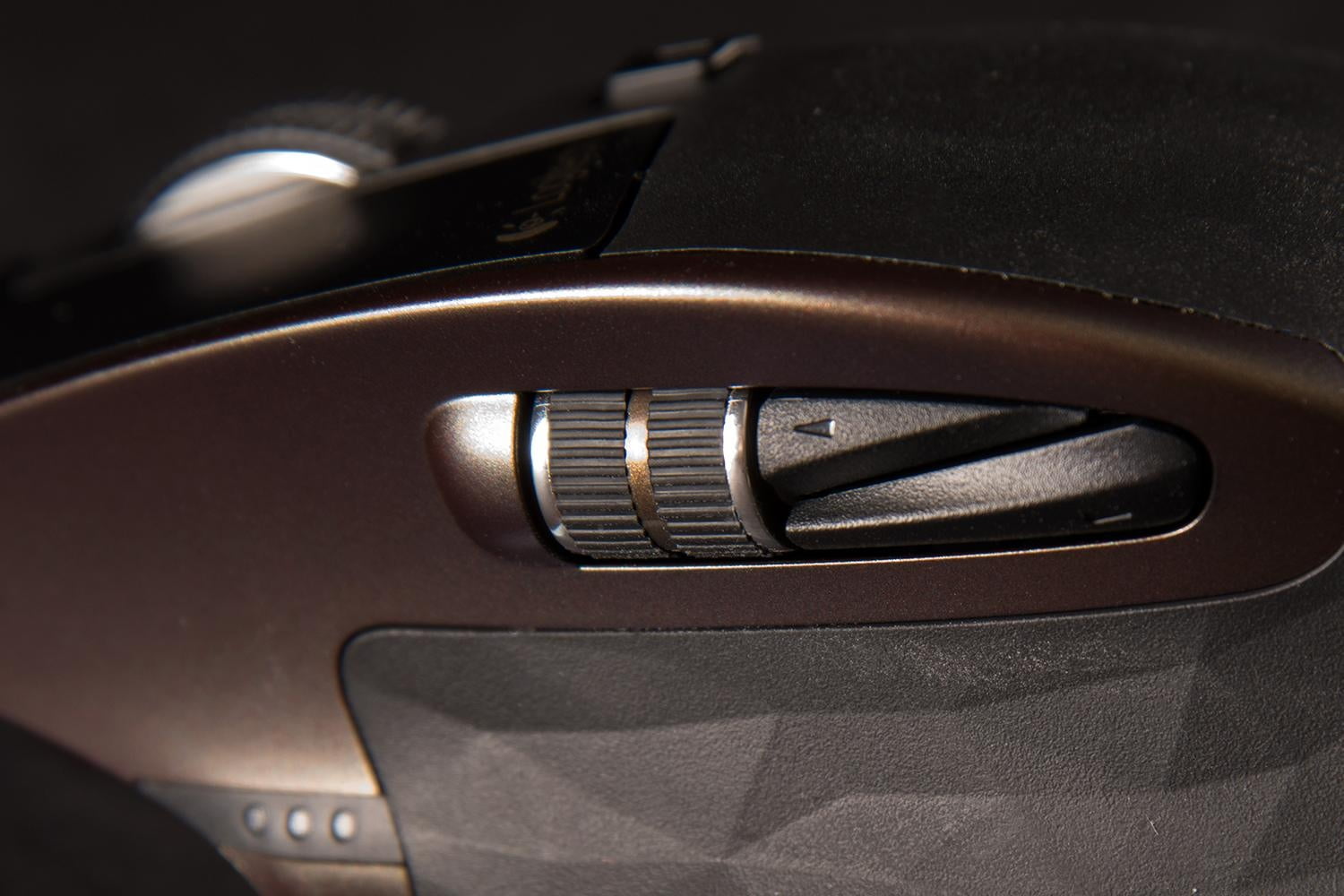یکی دیگر از نکات جالب توجه این ماوس، وجود 2 عدد کلید اسکرول (SCROLL) است.یکی در بالا جای استاندارد و یکی هم در بغل ماوس قرار گرفته است. این ماوس در حالت اتصال با سیم از طریق USB نیز به خوبی کار میکند و یک نرم افزار برای بکارگیری بهتر کلیدهای اختصاصی همراه این ماوس است. طراحی MX کاملا ارگونومیک است و جای استراحت دست با یک شیار به خوبی مدیریت شده است.در این موس یک قسمت برای قرارگیری انگشت شصت نیز قرار گرفته است.ظاهر کلی ماوس هم بسیار زیبا بوده و تمام 6 کلید قرار گرفته روی این ماوس به خوبی تحت فرمان شما خواهند بود. ظاهر این ماوس عجیب و کمی غیر عادی است اما کاربرد و مطمئن خواهد بود.