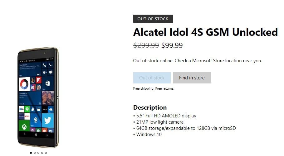 امروز تمام موجودی گوشی های ویندوز فونی در فروشگاه مایکروسافت صفر شده است و پیش بینی می شود که این کالا دوباره موجود نخواهند شد. اما به نظر میرسد که حالا فرصت مناسبی است تا تجربه استفاده از گوشی های ویندوزفونی را با یک قیمت استثنائی داشته باشیم. به عنوان نمونه گوشی HP Elite x3 که قیمت اصلی آن 799 دلار بود، حالا به قیمت 299 دلار به فروش میرسد، یا گوشی Idol 4s آلکاتل که پیشتر 300 دلار قیمت داشت حالا فقط 99.99 دلار می باشد.