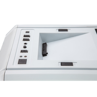 در قسمت بالای کیس پنل و امکانات کیس تعبیه شده است. دکمه های پاور و ریست، ورودی و خروجی صدا و درگاه Hot Swap برای نصب سریع هارددیسک های 2.5 و 3.5 اینچی و همچنین 2 کنترلر سرعت فن در بالای کیس جا خوش کرده اند!