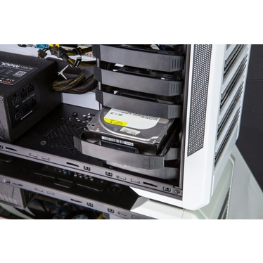 در بخش کارت های جانبی و مخصوصاً کارت گرافیک امکان نصب 8 کارت جانبی و پشتیبانی از کارت گرافیک های حرفه ای با طول حداکثر 320 میلی متر می تواند نوید خوبی برای گیمرها باشد و این دوستان با خیال راحت حرفه ای ترین کارت گرافیک ها را درون این کیس جای دهند . امکان نصب 8 عدد هارد دیسک 3.5 اینچی ، 3 عدد درایو نوری، 8 عدد درایو SSD  که به صورت مبدل روی همان محل نصب درایوهای 3.5 اینچی وجود دارد، اضافه کردن سریع درایوهای 2.5 یا 3.5 اینچی از طریق قابلیت HotSwapp این مژده را به آرشیو داران حرفه ای عزیز می دهد تا نگران کمبود فضا برای نصب تجهیزات ذخیره ساز خود درون کیس نباشند.
