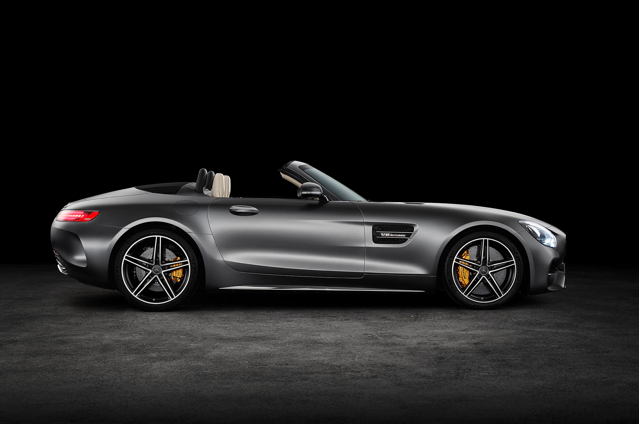 ابتدا نوبت به GT C میرسد، خودرویی که قرار است در کلاس رودستر کانورتیبل (دونفره و سقف جمع شونده) ارائه شود. البته شایعاتی هم از وجود مدل کوپه سقف دار آن نیز شنیده میشود که فعلا به آن نمیپردازیم. قلب این مرسدس با موتور 8 سیلندر 4 لیتری میتپد. این موتور نام آشنای کمپانی با کد M178 از دو توربو شارژ بهره میگیرد و توان خروجی آن 550 اسب بخار است و گشتاور نهایی 680 نیوتن متر میباشد. این قدرت توسط گیربکس اتوماتیک 7 سرعته دوکلاچه به چرخ های عقب میرسد . این قدرت و گشتاور از مدل GT S کوپه کمی بیشتر است و از مدل مسابقه ای GT R کمی ضعیف تر است. مدل پایه GT نیز 469 اسب بخار قدرت دارد و 630 گشتاور خروجی آن است. مرسدس ادعا کرده GT C رودستر 0 تا 100 کیلومتر را تنها در 3.7 ثانیه طی میکند. حداکثر سرعت آن نیز 315 کیلومتر در ساعت اعلام شده است. شتاب مدل GT نیز 3.9 ثانیه است و میتواند به حداکثر سرعت 302 کیلومتر دست یابد.
