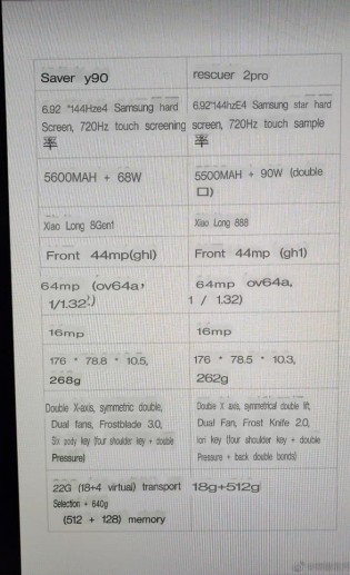تنظیمات دوربین نیز بدون تغییر و مانند سال گذشته است. مشخصات کلیدی لنوو Legion Y90 برای دوربین، شامل استفاده از لنز جلوی 44 مگاپیکسلی میشود. در عقب دو دوربین 64 مگاپیکسلی اصلی و 16 مگاپیکسلی اولترا واید وجود دارد. در مشخصات لیک شده، اشاره مختصری به خنککنندهی ارتقا یافته و کلیدهای فیزیکی گوشی شده است.