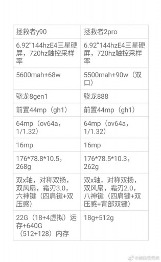 مشخصات کلیدی لنوو Legion Y90 در بخش پردازنده و رم شامل بهرهبردن گوشی از اسنپدراگون 8 نسل 1 همراه با 18 گیگابایت رم میشود، حتی با استفاده از dynamic RAM extension در اندروید رم دستگاه میتواند به 22GB نیز برسد. نمایشگر 6.92 اینچی سامسونگ AMOLED نیز با رفرشریت 144 هرتز از دیگر مشخصات این گوشی به حساب میآید. این گوشی تا حد زیادی مشابه Legion 2 Pro است که در سال گذشته راهی بازار شد.