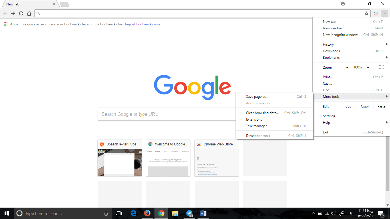 برای دریافت این افزونه ی جذاب ابتدا مرورگر کروم را اجرا کنید سپس بر روی منوی سمت راست کلیک کرده و وارد More tools شوید.