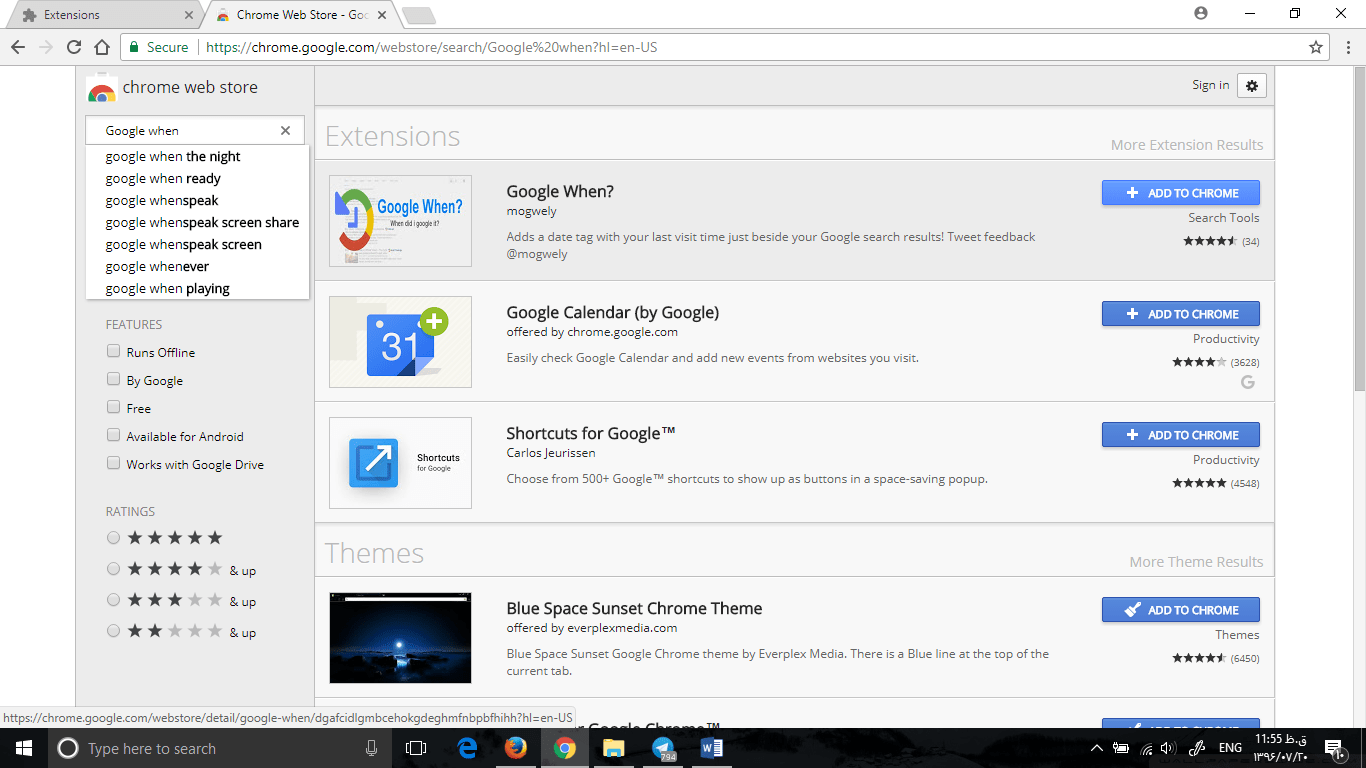 در قسمت جستجو کلمه Google when را تایپ کنید و Enter را بزنید. بر روی دکمه ی Add to chrome کلیک کرده و افزونه را به مرورگر خود اضافه کنید.