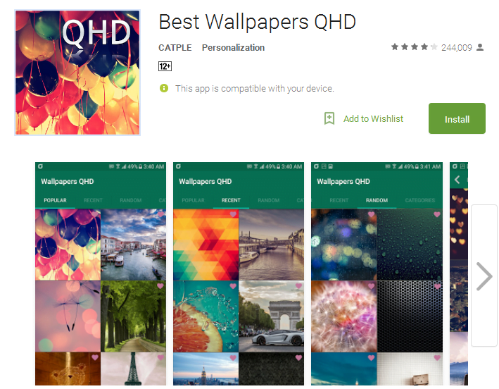 محبوبیت اپلیکیشن Best wallpaper QHD