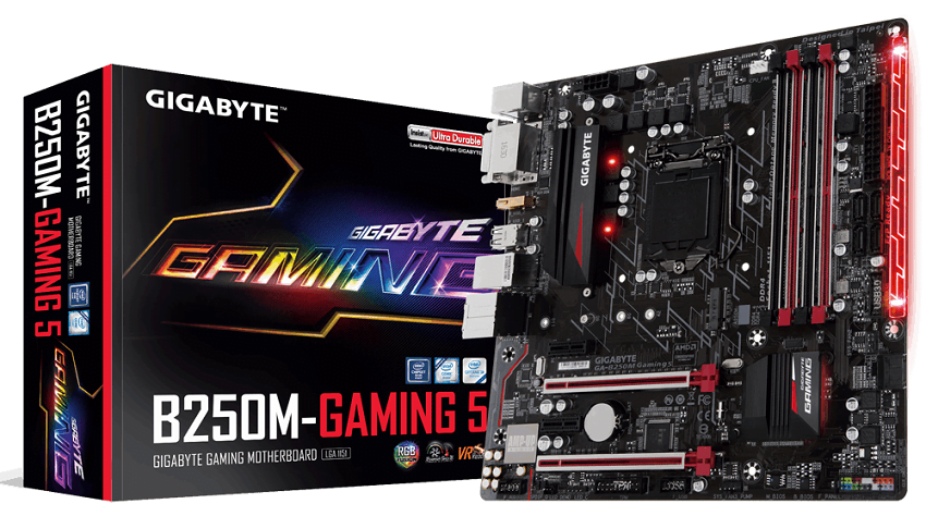 یکی از برترین میان رده های گیمینگ، مادربرد GIGABYTE B250M-Gaming 5 است. این مادربرد در حال حاضر در برخی از خرده فروشی های داخل کشور دیده شده است اما بهتر است منتظر نسخه شرکتی آن با گارانتی آواژنگ باشید. مادربردهای موجود در چیپست های Z270/Z170 از قیمت های نسبتا بالایی برخوردار هستند که خصوصا در مدل های گیمینگ، جیب بسیاری از کاربران قادر به پشتیبانی از آنها نیستند این مادربرد از پردازنده های مبتنی بر سوکت LGA 1151 پشتیبانی کرده و چند دیود LED در بخش هایی مانند تغذیه ATX و CPU نصب شده است. فرم اصلی آن micro-ATX است و گیگابایت بخش صوتی مادربرد را به طور کلی از مدار جدا کرده است. Intel B250 Express chipset یک چیپست میان رده از Intel است که فاقد قابلیت اورکلاک NVIDIA SLI است. با این وجود پتانسیل لازم جهت استفاده در یک مادربرد گیمینگ و یا نیمه حرفه ای را داراست.  علاوه بر 4 اسلات حافظه DDR4، دو عدد اسلات توسعه PCI-Express 3.0 x16 بر روی آن قرار دارد که یکی از آنها در حالت X4 فعال است. همچنین دو اسلات توسعه PCI-Express 3.0 x1 نیز برای آن در نظر گرفته شده است.