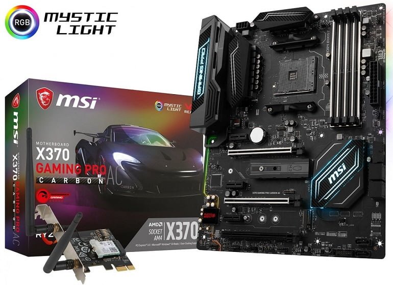 این محصول به چیپست X370 مجهز بوده و میزبان پردازنده های AMD Ryzen است. این محصول به یک ماژول ترکیبی Wi-Fi و بلوتوث نسخه 4.2 مجهز است که به مسیر PCIe X1 متصل می گردد. این دانگل فناوری های اتصال Dual Band 2×2 802.11ac و MU-MIMO Rx را به همراه دارد و پهنای باند آن به حداکثر 867 مگابیت در ثانیه نیز خواهد رسید. MSI از کنترلر Intel Dual Band Wireless-AC 8265 بهره گرفته است. دو اسلات SSD M.2 در این مادربرد موجود است که یکی از آنها به فناوری Shield مجهز است تا دمای سالید را پایین نگاه دارد. دو عدد اسلات PCI Express 3.0 X16 به همراه یک پورت USB-C و 4 اسلات رم با پشتیبانی از ظرفیت 64 گیگابایتی، از جمله دیگر مشخصات فنی این مادربرد هستند. مادربرد MSI X370 Gaming Pro Carbon AC از جمله مدل هایی است که در سوکت های LGA 1151 نیز شاهد آن هستیم. این مادربرد اگر چه به نام گیمینگ عرضه می گردد، اما به دلیل استفاده از فناوری های مدرن و قدرتمند، می تواند میزبان یک کامپیوتر قدرتمند باشد. ماژول Wi-Fi به کار رفته در آن می تواند اطلاعات را با سرعت 433 مگابیت در ثانیه منتقل نماید. همچنین سیستم صوتی Audio Boost 4 نیز آن را همراهی می کند. شایان ذکر است که چیپست X370 تنها تراشه ای است که از پیکربندی SLI پشتیبانی می کند.
