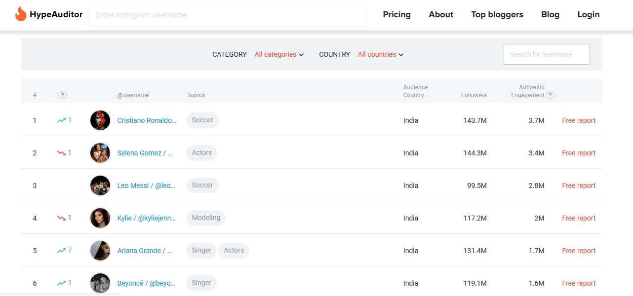 این سایت همچنین فالوورها و لایک های فیک را نیز شناسایی خواهد کرد. امکان شناسایی پرطرفدار ترین کاربران در هر کشور نیز وجود دارد که متاسفانه کشور ایران در لیست دسته بندی ها وجود ندارد اما امکان جستجوی کاربران ایرانی ارائه شده است. به طور کلی این سایت بسیار سرگرم کننده و جذاب خواهد بود و نظر کاربران زیادی را به خود جلب کرده است. بر اساس این لیست می توان سریع و ساده معروف ترین های اینستاگرام را شناسایی کرد و پست ها و عکس هایشان را مشاهده نمود.