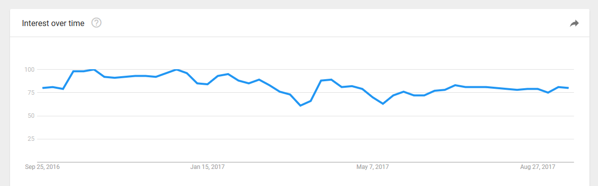 در قسمت Interest over time، نموداری از میزان جستجو های آن عنوان در زمان های مختلف را دریافت خواهید کرد.