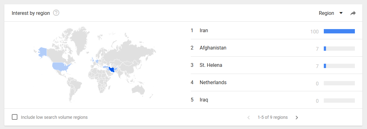 در قسمت Interest by subregion مناطقی که بیشترین سرچ را طبق آن عنوان داشته اند نمایش میدهد و میتوانید با انتخاب کشور یا شهر مورد نظر اطلاعات را با جزییات بیشتری دریافت کنید.